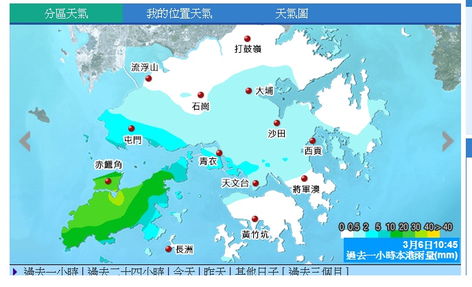 异地天气收藏关注:独家支持收藏多个精确到街道的地址,关心你关心的人 全国降水雷达拼图:权威专业气象雷达外推图,运动趋势、雨量大小一眼即知。 全国雾霾动态图:雾霾在增长还是在消散? 大风把雾霾都被吹去哪里了? 全国雾霾变化一目了然。 天文台. The site owner hides the web page description.